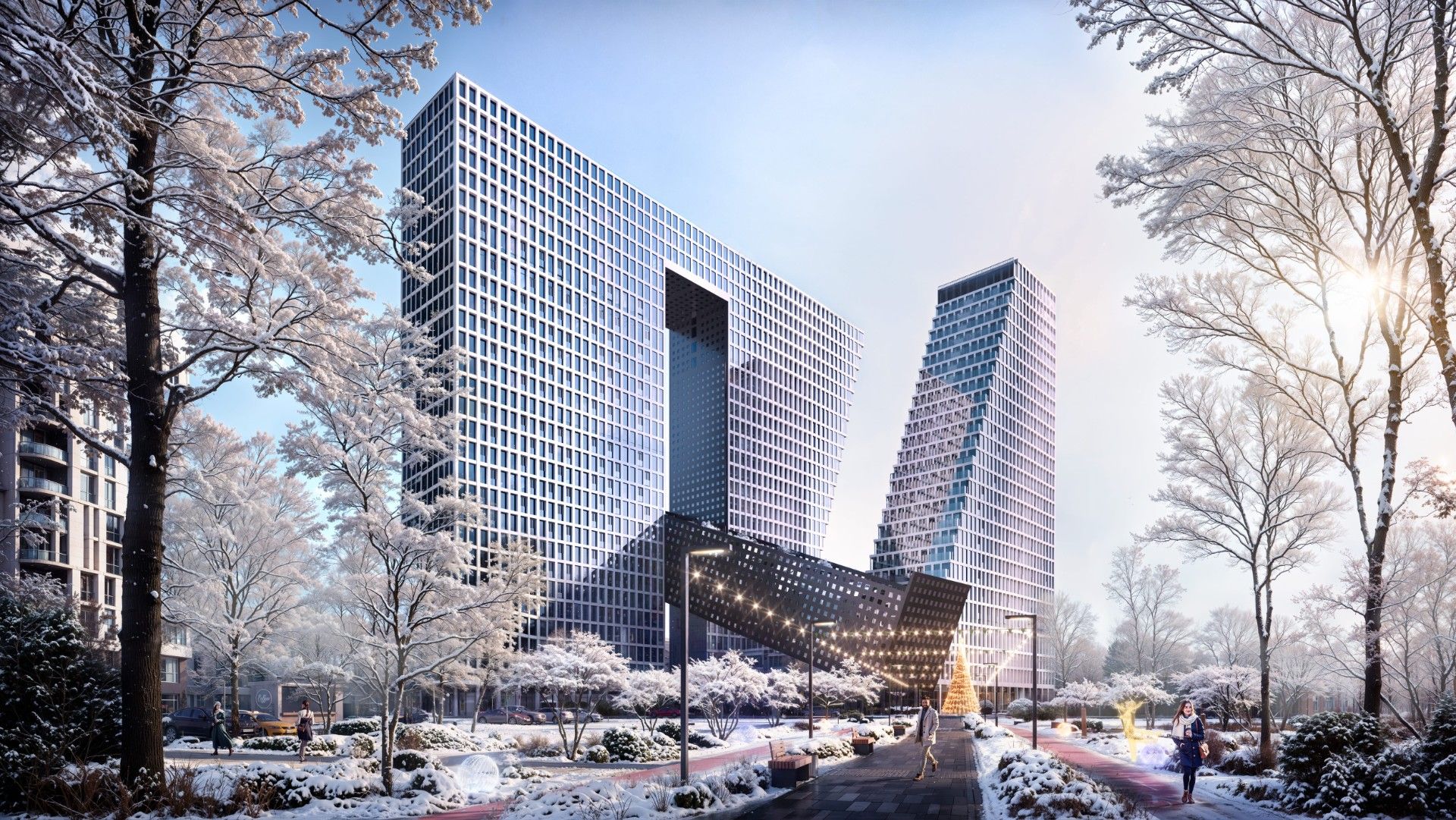 Здесь располагается собственный SPA-центр с открытым бассейном и панорамными видами на столицу, офисный центр с конференц-залом и амфитеатром, подземный паркинг, кафе, супермаркет, а также приватные общественные пространства для резидентов, где можно провести частные и детские мероприятия, организовать досуг, позаботиться о своей красоте и здоровье.